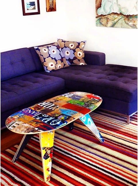 The large rounded corners of the countertop give the coffee table a different personality. @wobydesign check out my patreon page! There are many short essays by skaters and designers with stories that add a lot. Wooden surfboard shape coffee table with tropical botanical print as living room decor. Rated 5 out of 5 stars.