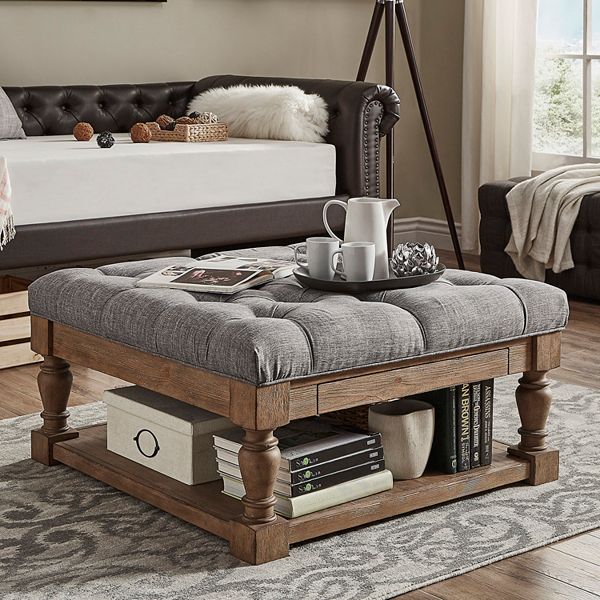 The ottoman is upholstered in fine fabric and completed with button tufting. Avalon button tufted espresso leather square ottoman coffee table. Buy top selling products like storage bench with tray and 2 ottomans in greige and simpli home harrison upholstered coffee table ottoman. Otto & ben coffee table with smart lift top tufted folding faux leather trunk ottomans bench foot rest, 30 square, brown. Leather ottoman coffee tables *see offer details.